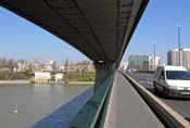 Soon, you'll approach the Pont de Clichy, a bridge across the Seine. (The concrete structure in the photo is the Métro, which surfaces between Mairie de Clichy and the river.)